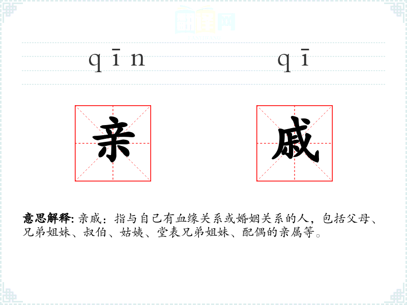"亲戚"的意思解释、亲戚是什么意思由翻译网汉语词典查词提供。