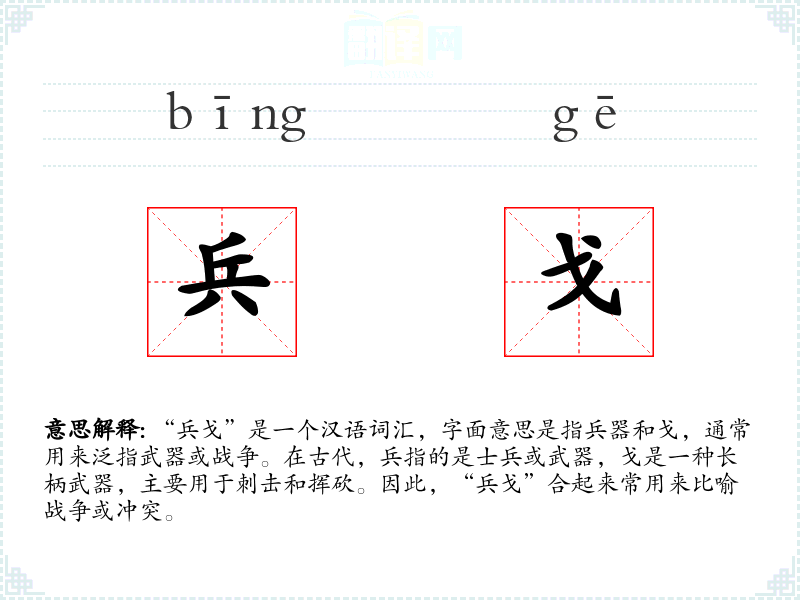 在英语中,类似的词汇可能是“arms”或“weapons”,但它们缺少“兵戈”所带有的历史和文化深度。