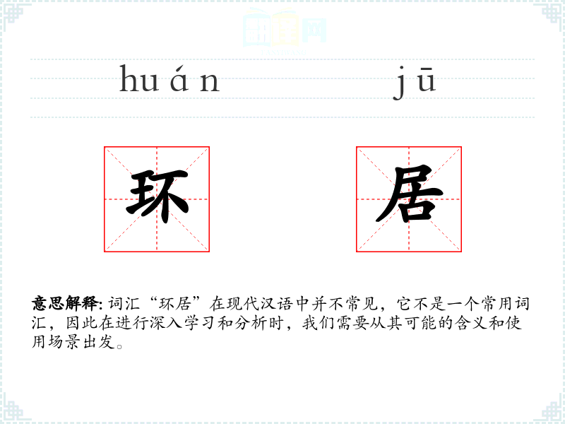 词汇“环居”在现代汉语中并不常见,它不是一个常用词汇,因此在进行深入学习和分析时,我们需要从其可能的含义和使用场景出发。