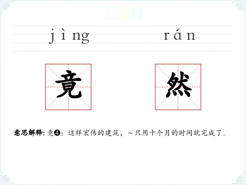 竟➍:这样宏伟的建筑,~只用十个月的时间就完成了。