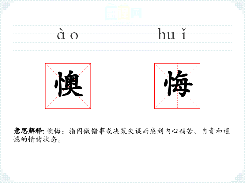 - 同义词:后悔、自责、遗憾