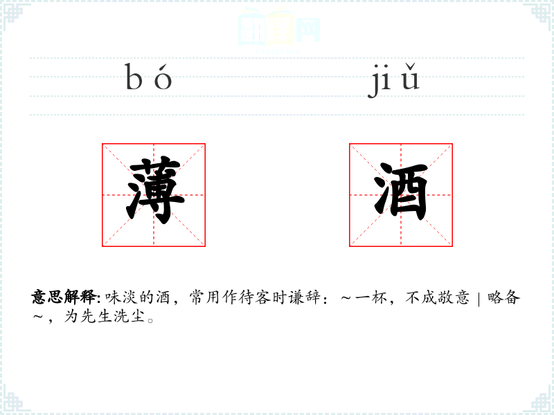 薄酒的分字解释