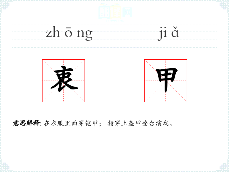 衷甲的分字解释