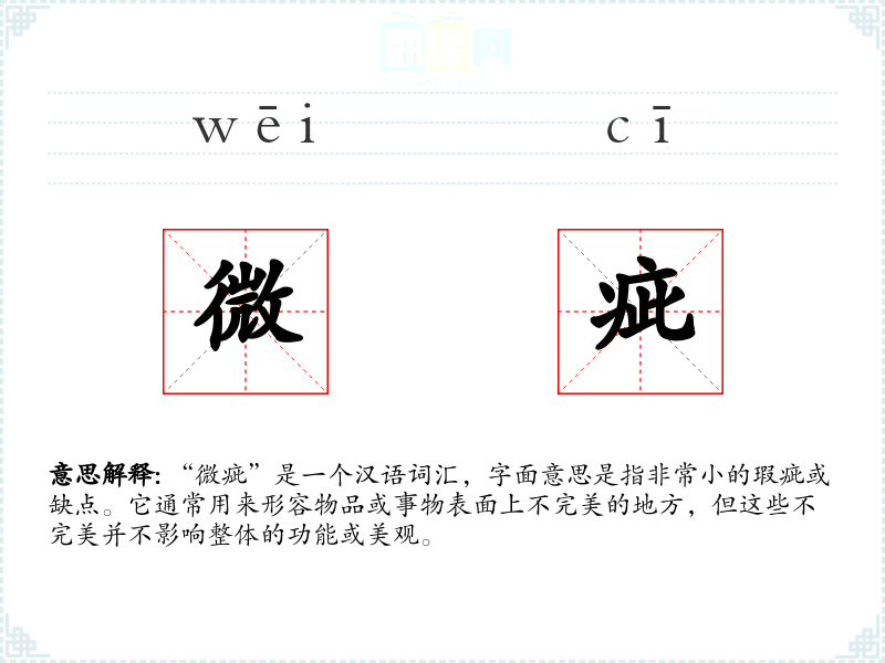 “微疵”一词源自汉语,其中“微”意为小或轻微,“疵”意为瑕疵或缺点。这个词在古代文献中已有使用,随着时间的推移,其含义和用法基本保持稳定。