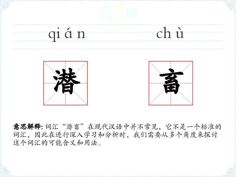 词汇“潜畜”在现代汉语中并不常见,它不是一个标准的词汇,因此在进行深入学习和分析时,我们需要从多个角度来探讨这个词汇的可能含义和用法。