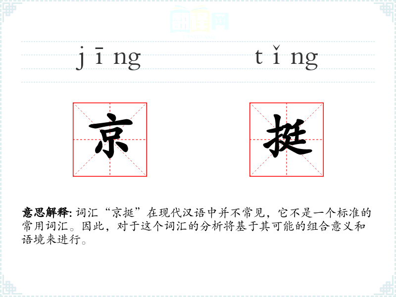 - 反义词:对于“京”,反义词可能是“地方”;对于“挺”,反义词可能是“不”、“不太”。