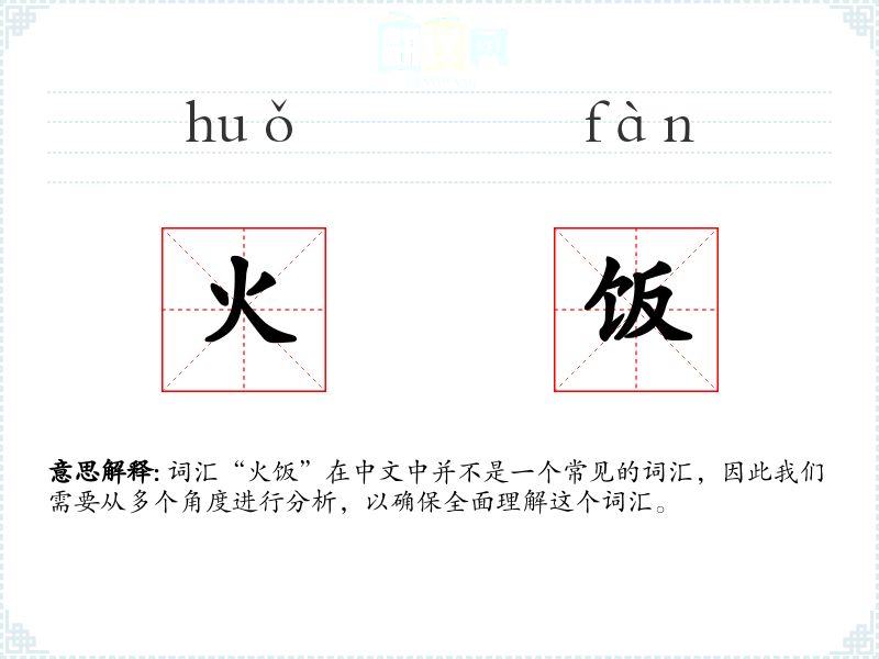 词汇“火饭”在中文中并不是一个常见的词汇,因此我们需要从多个角度进行分析,以确保全面理解这个词汇。