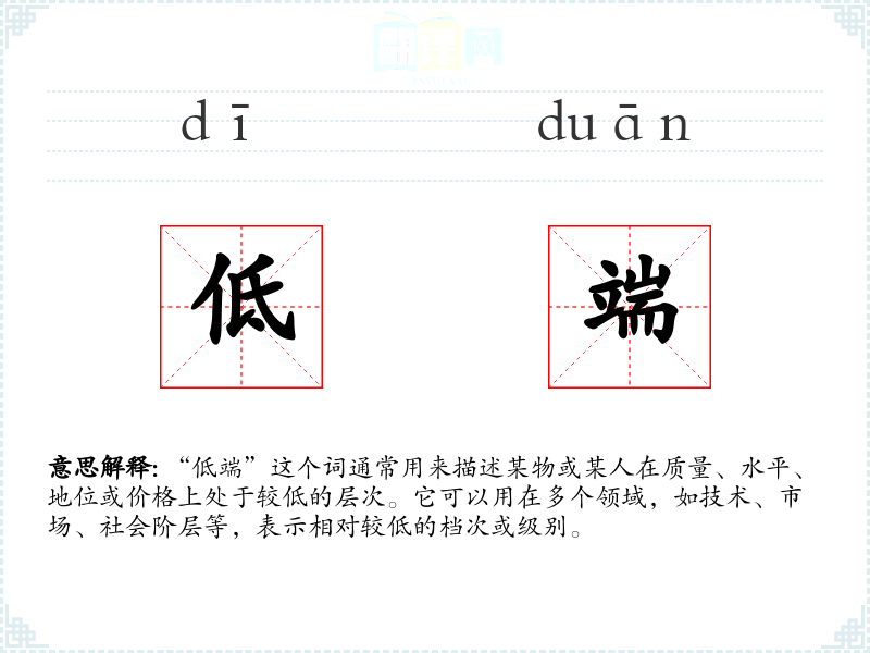 - 反义词:高端、高档、高级、优质、高端市场、高端产品