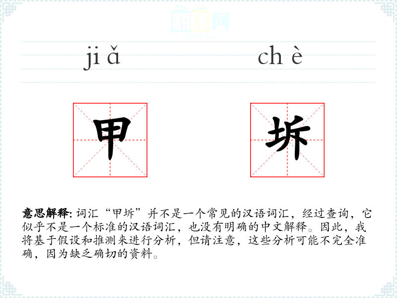 综上所述,由于“甲坼”不是一个标准的汉语词汇,我们无法对其进行深入的学习和分析。如果你有更多的上下文信息或者是指某个特定的词汇,请提供详细信息,以便进行更准确的分析。