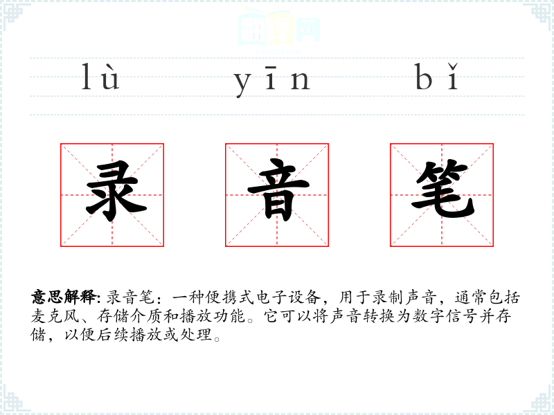 "录音笔"的意思解释、录音笔是什么意思由翻译网汉语词典查词提供。