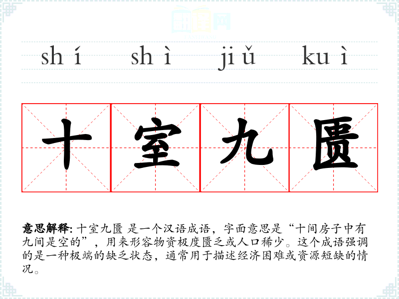 十室九匮 是一个汉语成语,字面意思是“十间房子中有九间是空的”,用来形容物资极度匮乏或人口稀少。这个成语强调的是一种极端的缺乏状态,通常用于描述经济困难或资源短缺的情况。
