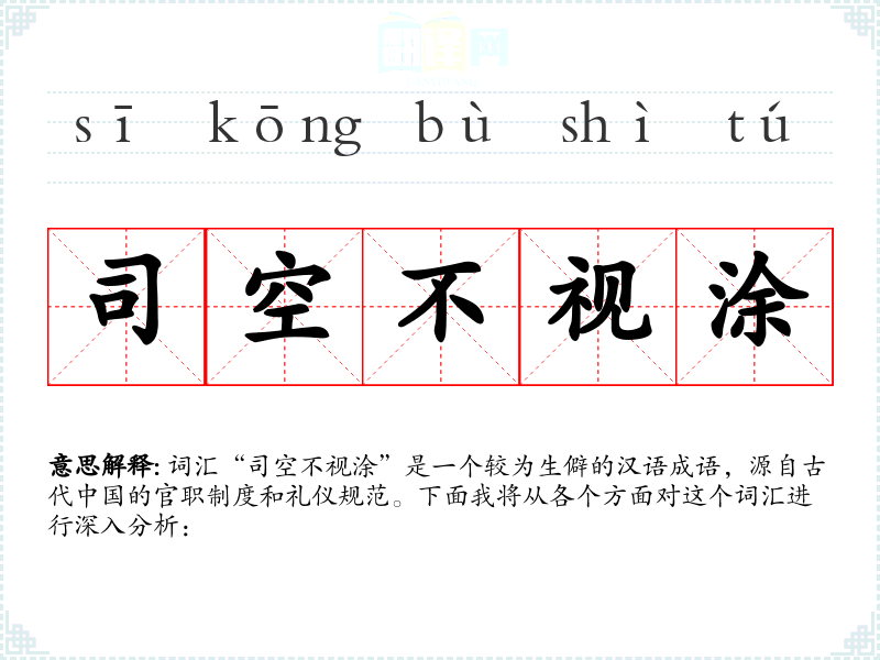 词汇“司空不视涂”是一个较为生僻的汉语成语,源自古代**的官职制度和礼仪规范。下面我将从各个方面对这个词汇进行深入分析: