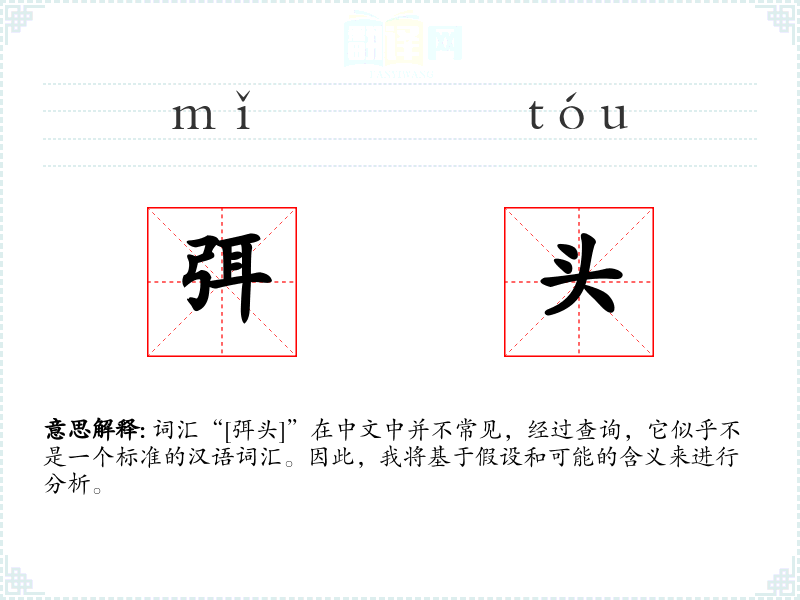 词汇“[弭头]”在中文中并不常见,经过查询,它似乎不是一个标准的汉语词汇。因此,我将基于假设和可能的含义来进行分析。
