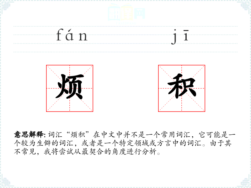 词汇“烦积”在中文中并不是一个常用词汇,它可能是一个较为生僻的词汇,或者是一个特定领域或方言中的词汇。由于其不常见,我将尝试从最契合的角度进行分析。