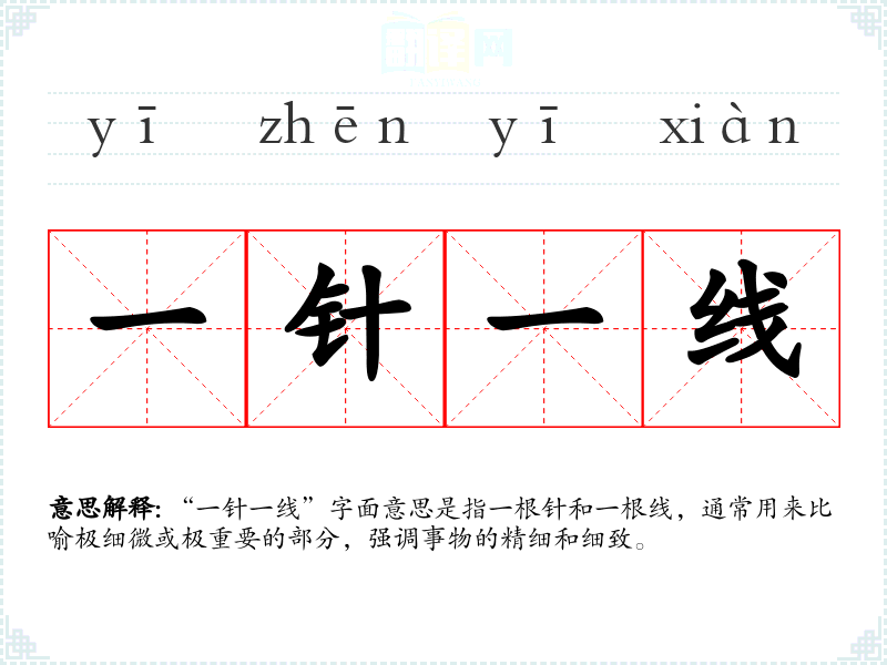 “一针一线”字面意思是指一根针和一根线,通常用来比喻极细微或极重要的部分,强调事物的精细和细致。