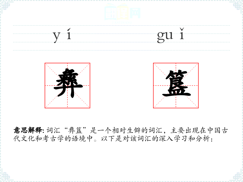 词汇“彝簋”是一个相对生僻的词汇,主要出现在*古代文化和考古学的语境中。以下是对该词汇的深入学和分析: