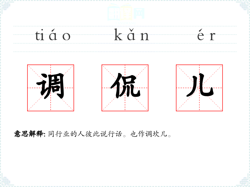 同行业的人彼此说行话。也作调坎儿。