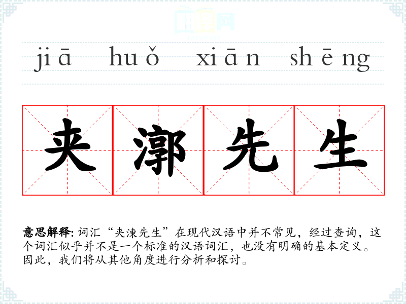 词汇“夹涷先生”在现代汉语中并不常见,经过查询,这个词汇似乎并不是一个标准的汉语词汇,也没有明确的基本定义。因此,我们将从其他角度进行分析和探讨。