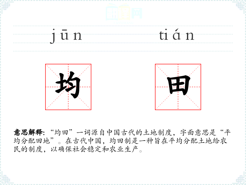 “均田”一词源自古代的土地制度,字面意思是“平均分配田地”。在古代,均田制是一种旨在平均分配土地给农民的制度,以确保社会稳定和农业生产。