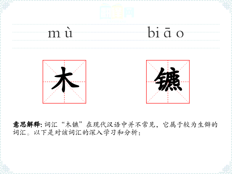 词汇“木镳”在现代汉语中并不常见,它属于较为生僻的词汇。以下是对该词汇的深入学习和分析: