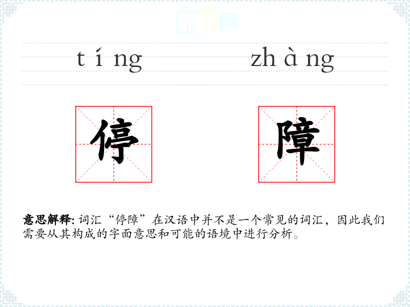 词汇“停障”在汉语中并不是一个常见的词汇,因此我们需要从其构成的字面意思和可能的语境中进行分析。