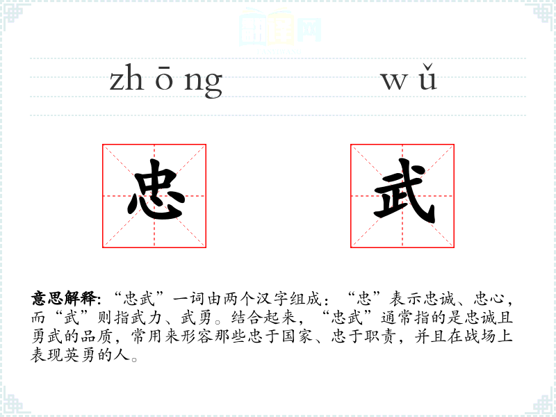 - 同义词:忠勇、忠烈