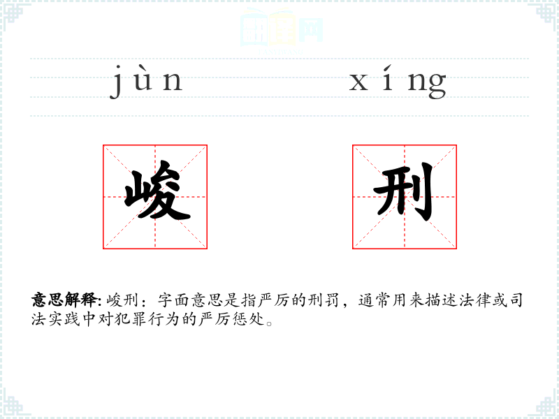 峻刑:字面意思是指严厉的刑罚,通常用来描述法律或司法实践中对犯罪行为的严厉惩处。