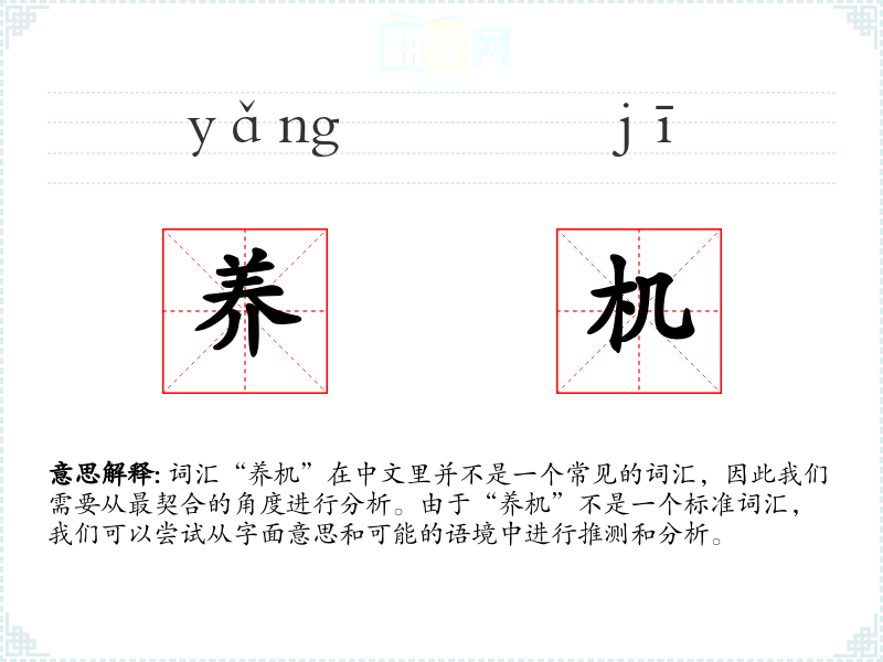 "养机"的意思解释、养机是什么意思由翻译网汉语词典查词提供。