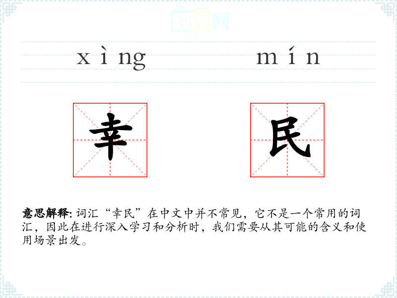 词汇“幸民”在中文中并不常见,它不是一个常用的词汇,因此在进行深入学*和分析时,我们需要从其可能的含义和使用场景出发。