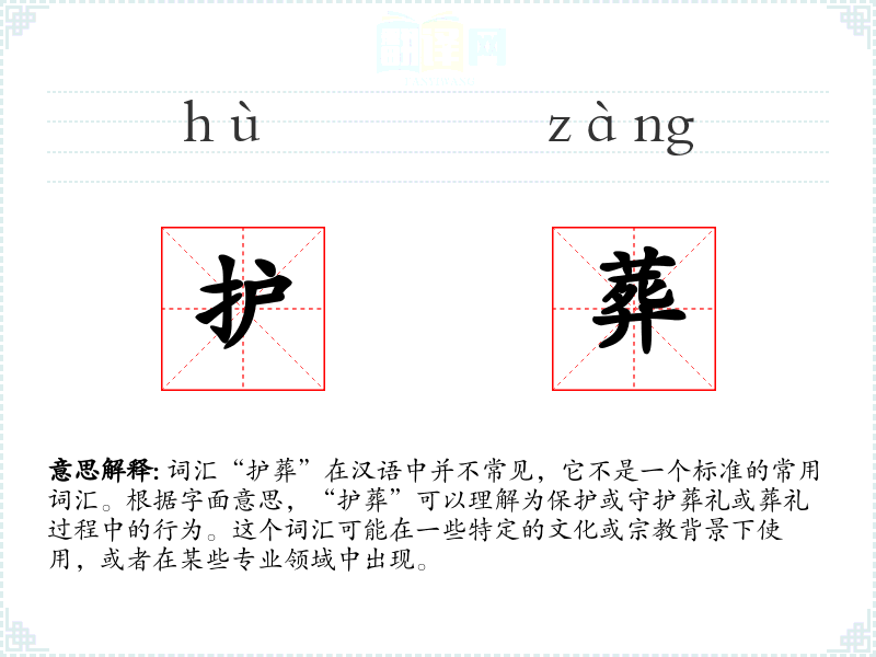 - 反义词:无(由于“护葬”不是一个常用词汇,反义词可能不明显)