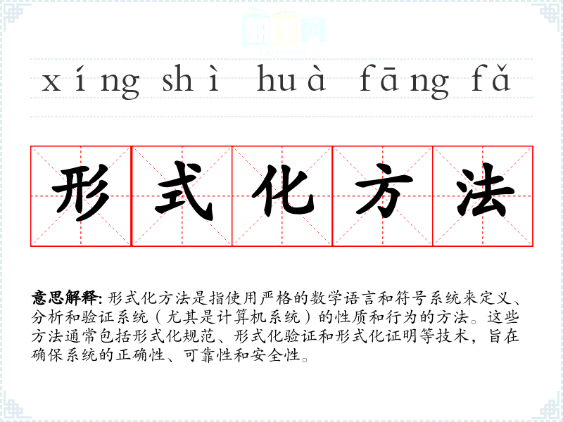 在不同语言中,形式化方法的对应词汇可能有所不同,但其核心概念——使用严格的数学和逻辑方法来分析和验证系统——是普遍适用的。