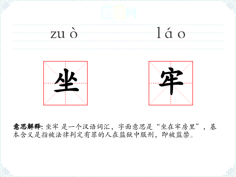 “坐牢”一词的词源较为直接,由“坐”和“牢”两个字组成,其中“坐”表示静态的动作,“牢”指监狱。在古代汉语中,“牢”原本指关押牲畜的地方,后来引申为关押人的地方。