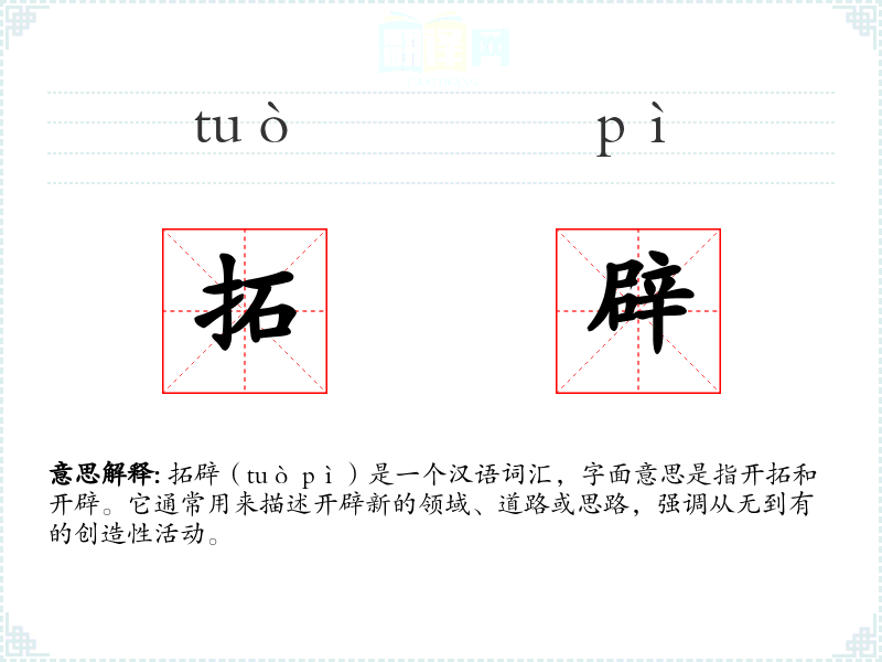 - 专业领域:在科技、学术等领域,“拓辟”可以指发现新理论或技术,如“科学家们拓辟了量子计算的新领域”。