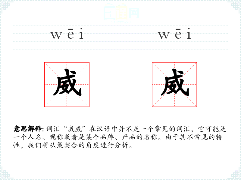 词汇“威威”在汉语中并不是一个常见的词汇,它可能是一个人名、昵称或者是某个品牌、产品的名称。由于其不常见的特性,我们将从最契合的角度进行分析。