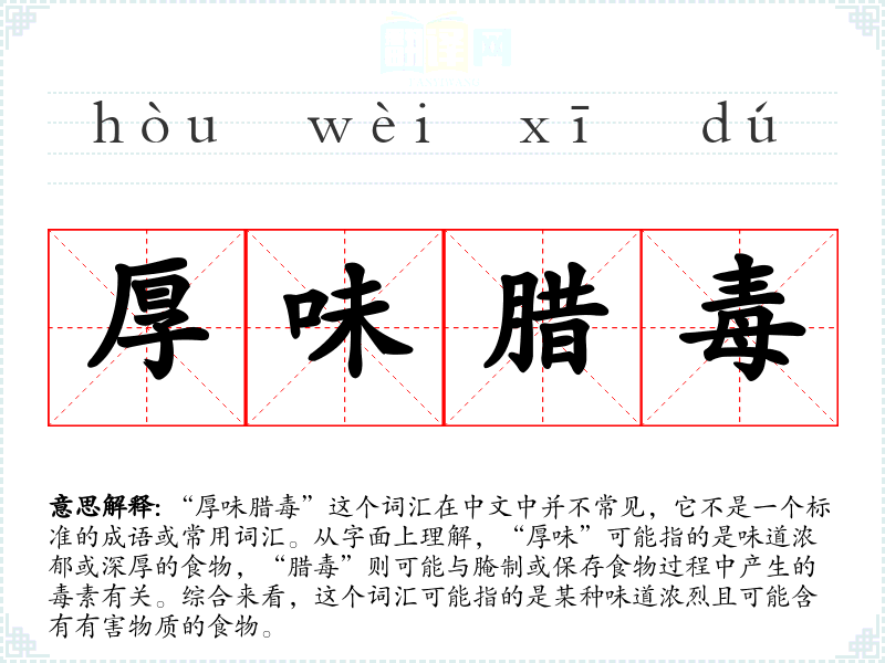 "厚味腊毒"的意思解释、厚味腊毒是什么意思由翻译网汉语词典查词提供。