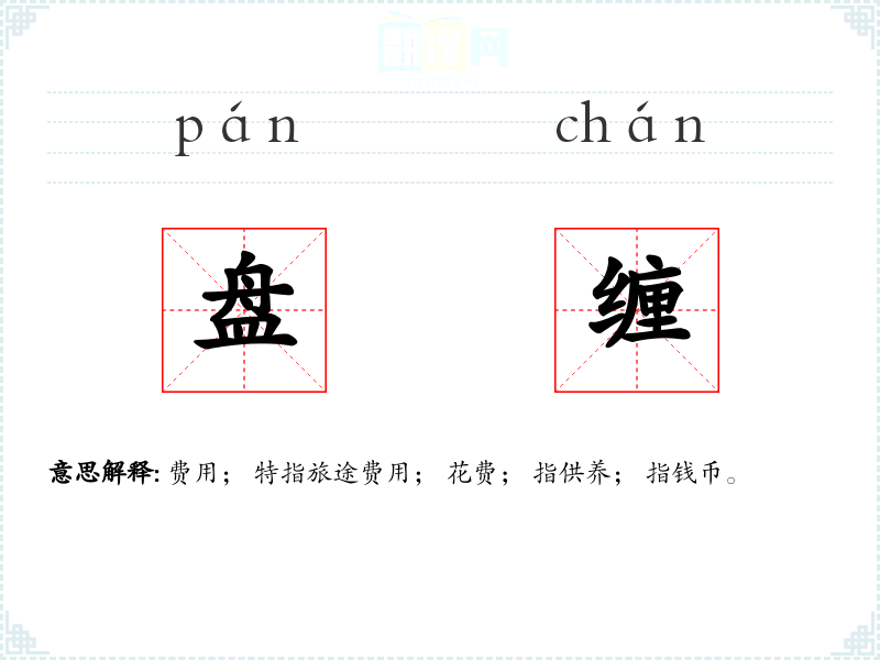 费用; 特指旅途费用; 花费; 指供养; 指钱币。