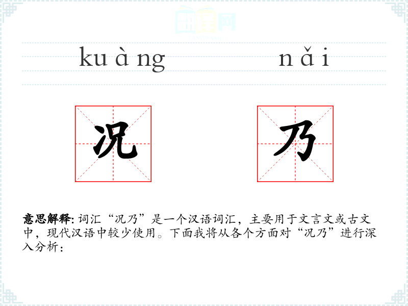 - 专业领域:在某些专业文献或古文研究中,可能会遇到“况乃”的使用。