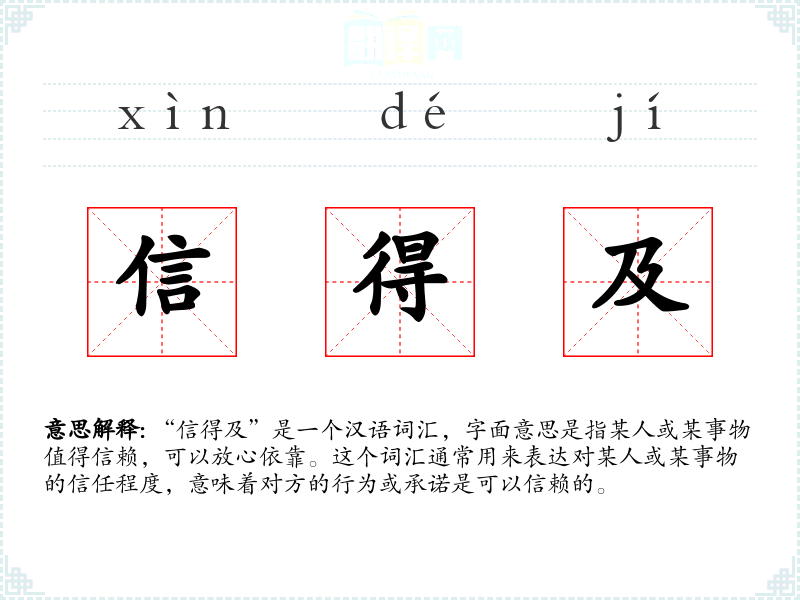 - 口语语境:在日常对话中,这个词汇可能用来表达对某人的信任,如“你信得及他吗?我觉得他做事很靠谱。”