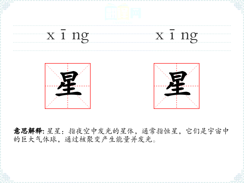 - 反义词:无(星星作为自然现象,没有直接的反义词)