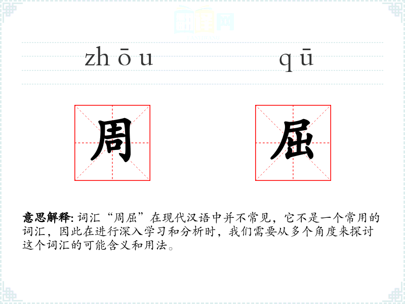 词汇“周屈”在现代汉语中并不常见,它不是一个常用的词汇,因此在进行深入学习和分析时,我们需要从多个角度来探讨这个词汇的可能含义和用法。