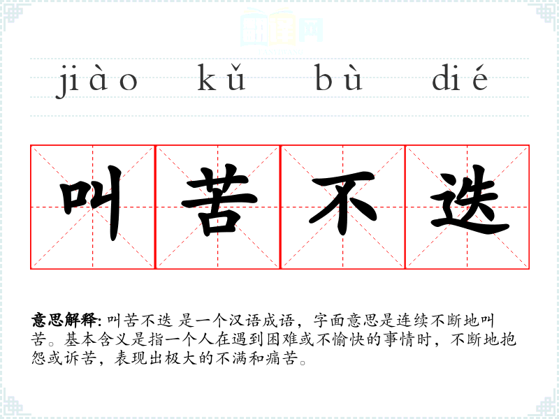 - 口语:在日常对话中,这个词汇常用来形容某人频繁抱怨,如“自从他失业后,就一直在家里叫苦不迭。”