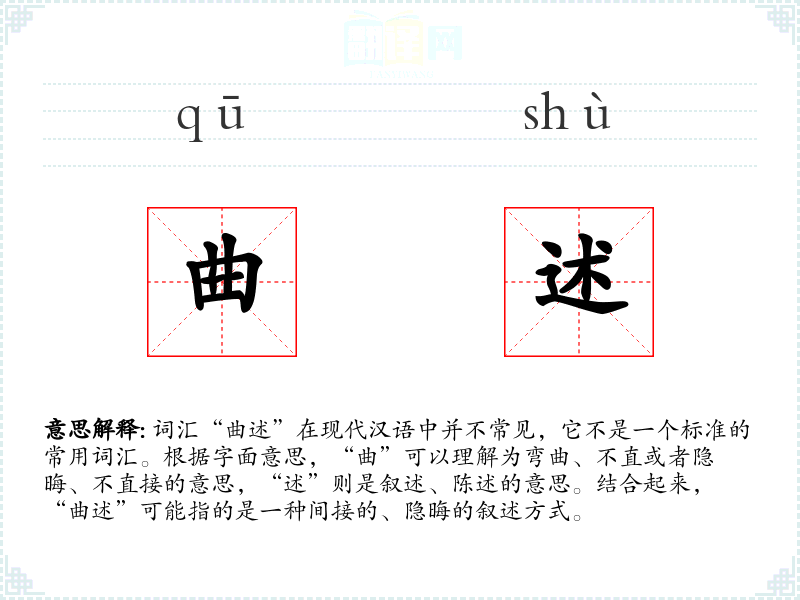 “曲述”可能指的是通过间接或隐晦的方式来表达或叙述某件事情,而不是直接明了地陈述。