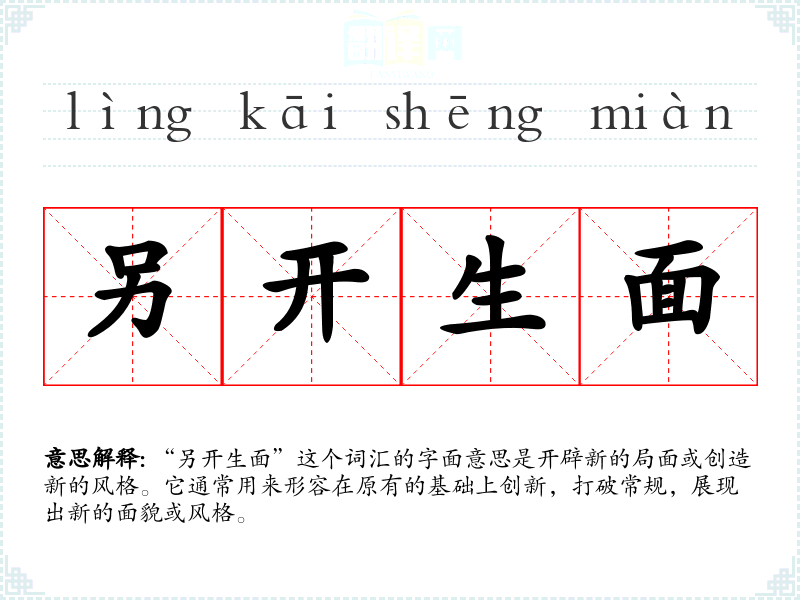 “另开生面”这个词汇的字面意思是开辟新的局面或创造新的风格。它通常用来形容在原有的基础上创新,打破常规,展现出新的面貌或风格。