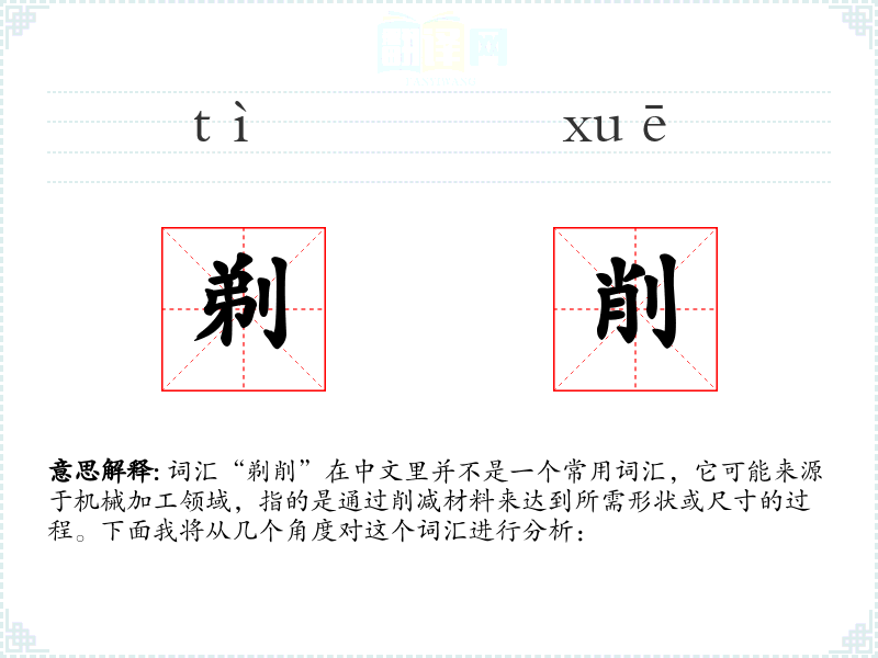 词汇“剃削”在中文里并不是一个常用词汇,它可能来源于机械加工领域,指的是通过削减材料来达到所需形状或尺寸的过程。下面我将从几个角度对这个词汇进行分析: