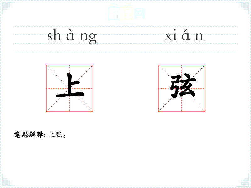 "上弦"的意思解释、上弦是什么意思由翻译网汉语词典查词提供。