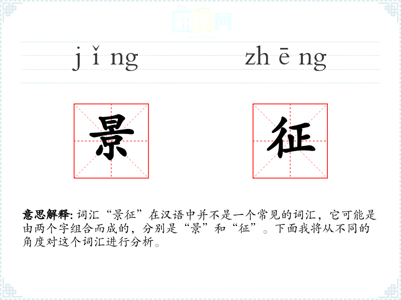 词汇“景征”在汉语中并不是一个常见的词汇,它可能是由两个字组合而成的,分别是“景”和“征”。下面我将从不同的角度对这个词汇进行分析。