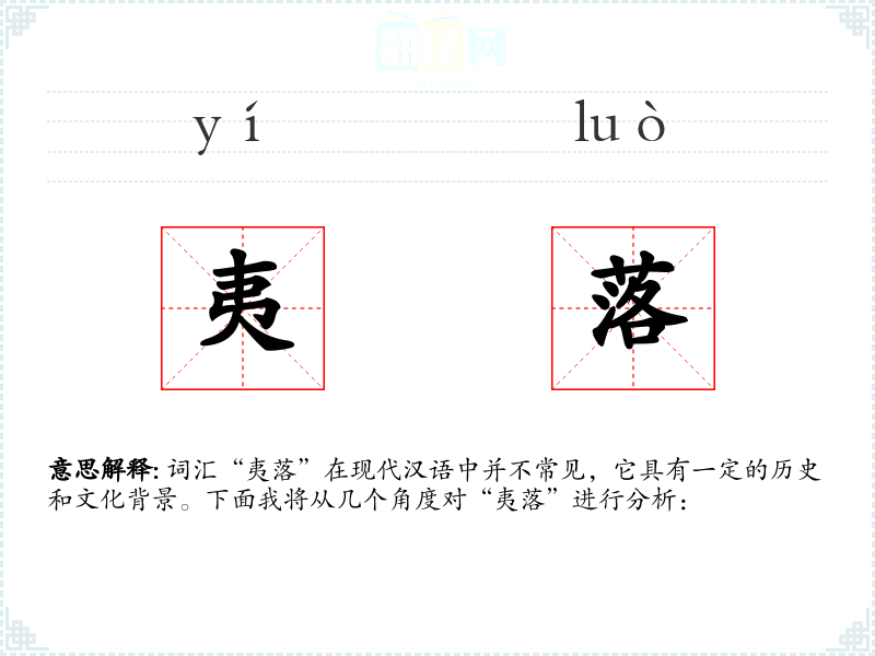 词汇“夷落”在现代汉语中并不常见,它具有一定的历史和文化背景。下面我将从几个角度对“夷落”进行分析:
