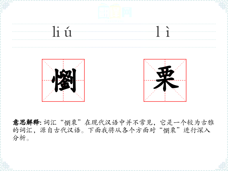 词汇“懰栗”在现代汉语中并不常见,它是一个较为古雅的词汇,源自古代汉语。下面我将从各个方面对“懰栗”进行深入分析。