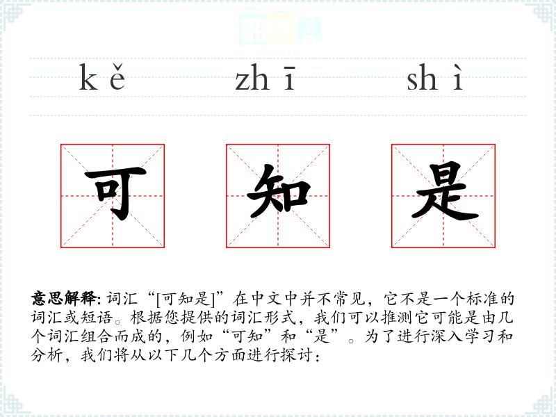 “[可知是]”作为一个组合词汇,强调了事物的可理解性和确认性。在语言学*和表达中,它可以用来加强论点的明确性和说服力。然而,由于它不是一个标准词汇,其使用需要根据具体语境来确定。