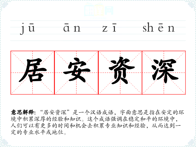 在文化中,稳定和积累被视为成功的重要因素。因此,“居安资深”这个成语在社会中被广泛接受和使用,尤其是在强调经验和专业性的领域。